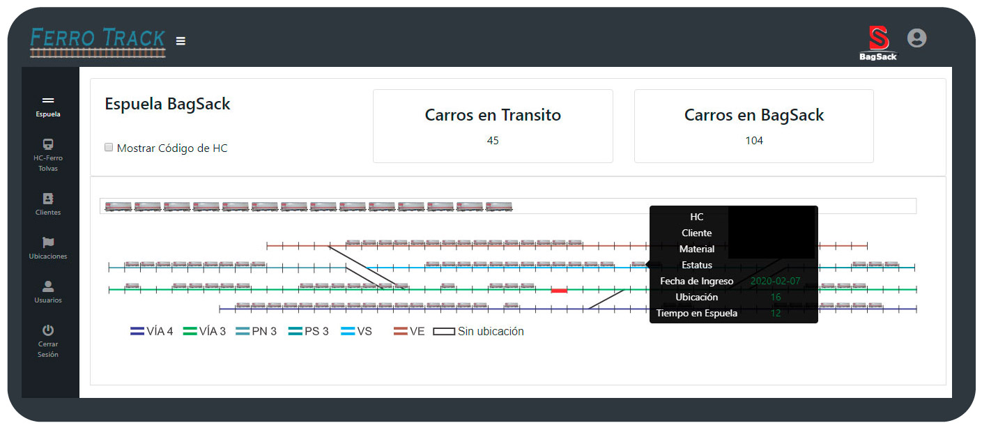 Hemos desarrollado un sistema de rastreo llamado «FERROTRACK», el cual nos permite conocer la localización de las unidades de ferrocarril direccionadas a nuestra terminal, desde su origen en cualquier punto de Norte América hasta su llegada a Bagsack.